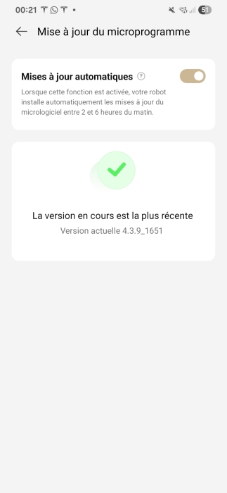 【X50 Ultra Complete】Je suis a la version 4.3.9_1651 alors que actuellement la dernière version est 4.3.9_2044 Un ami a acheté le meme aspirateur au meme moment et il est a la derniere version Comment avoir accès a la...voir tout
